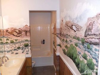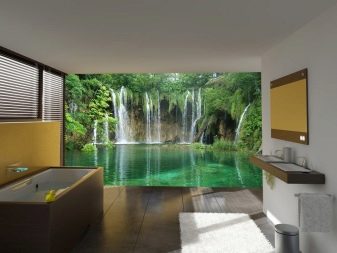 Dans le même temps, la salle de bain est une zone conditionnelle de détente et de repos. Par conséquent, la conception doit être abordée avec soin et délibérément. Le papier peint dans cette pièce créera un coin qui correspond à l'ambiance, au style et au style de vie du propriétaire de l'appartement.