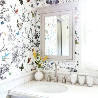 Les papiers peints, comme tout autre type de finition, ont des avantages et des inconvénients. Ce matériau de bain présente les avantages suivants: