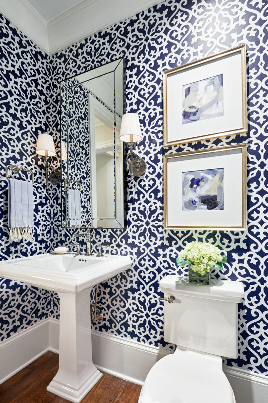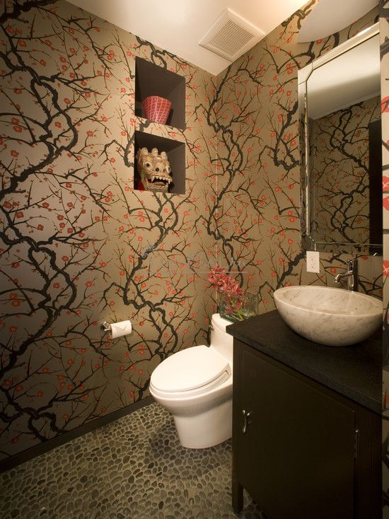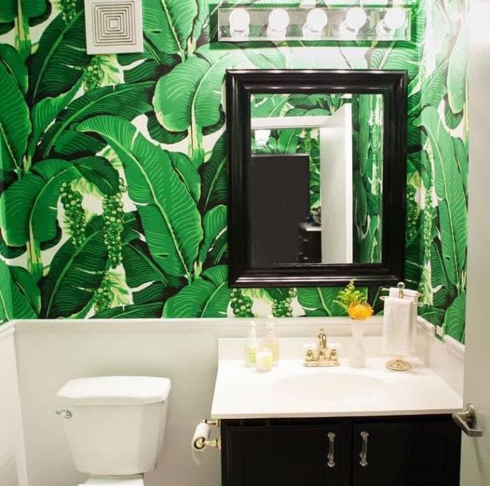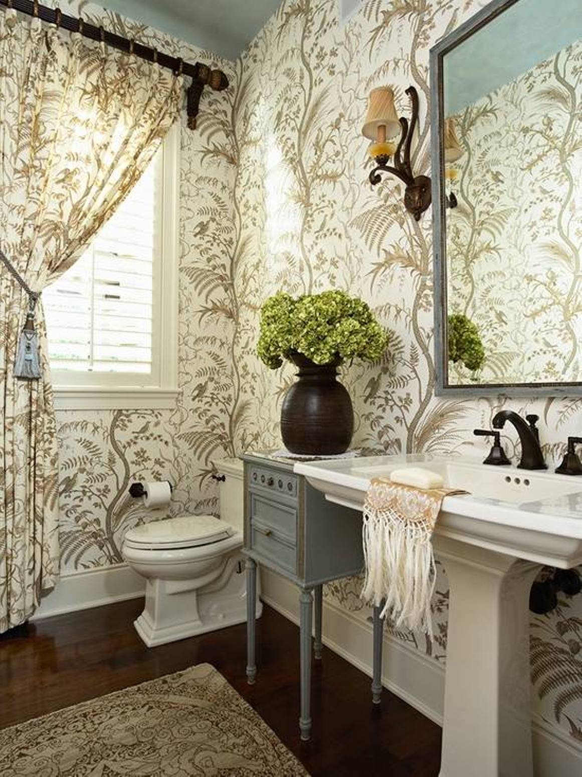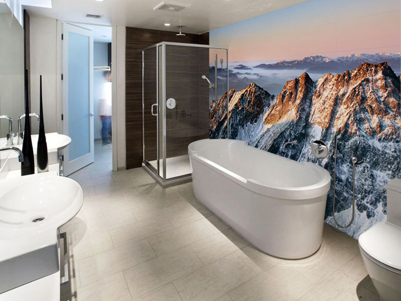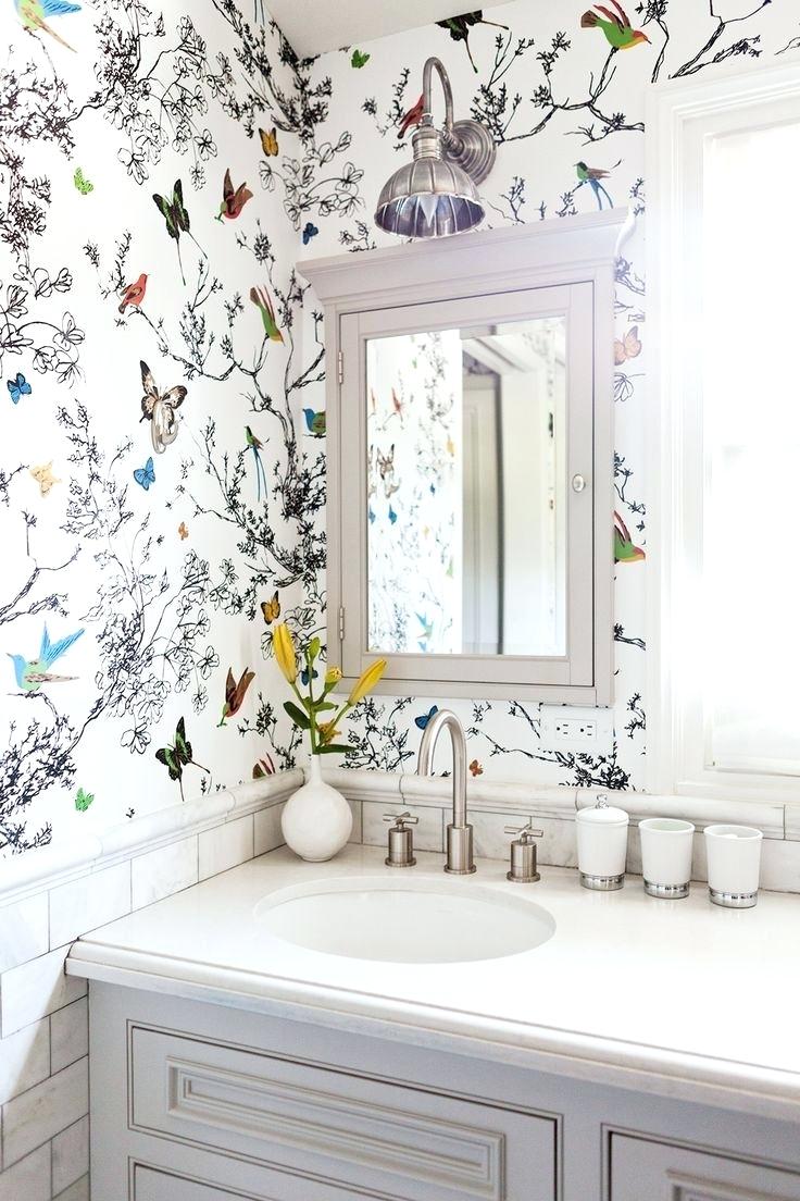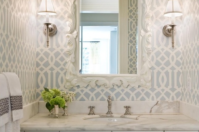La salle de bain est un endroit idéal pour expérimenter et traduire leurs idées de design. Le papier peint se combine facilement et harmonieusement avec d'autres matériaux par conséquent, l'intérieur de la pièce que vous pouvez créer est le plus diversifié: