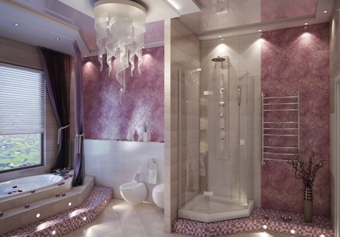 - Correction de l'espace visuel.Avec l'aide de papier peint, vous pouvez augmenter ou réduire visuellement la taille de la salle de bain.