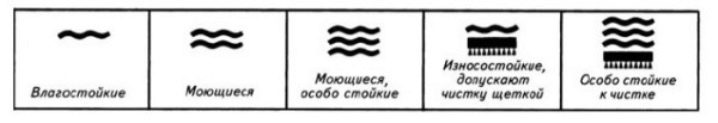 Le type lavable de revêtement a plusieurs types qui diffèrent par le degré de résistance à l'humidité. Chaque type a son propre étiquetage: