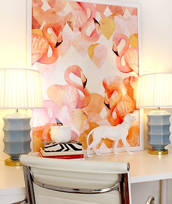 Vous pouvez vous contenter d'acheter une statuette d'un beau flamant rose. En passant, pour atteindre l'harmonie, il n'est pas du tout nécessaire de répéter l'image d'un oiseau. Vous pouvez rendre l'intérieur plus holistique à l'aide de couleurs.
