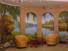 La taille des fresques va des petites toiles sous forme de peintures individuelles aux produits à grande échelle de 5 mètres de large. Cela vous permet de mettre en œuvre toutes les idées de conception, établissant non pas un, mais plusieurs murs de la pièce.