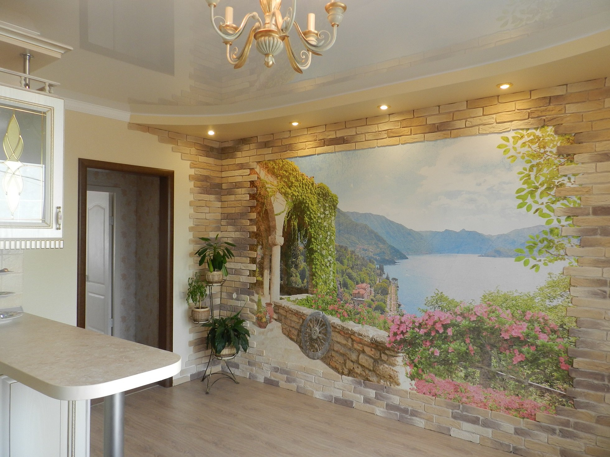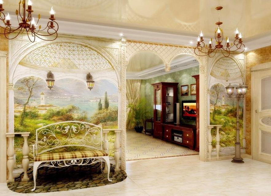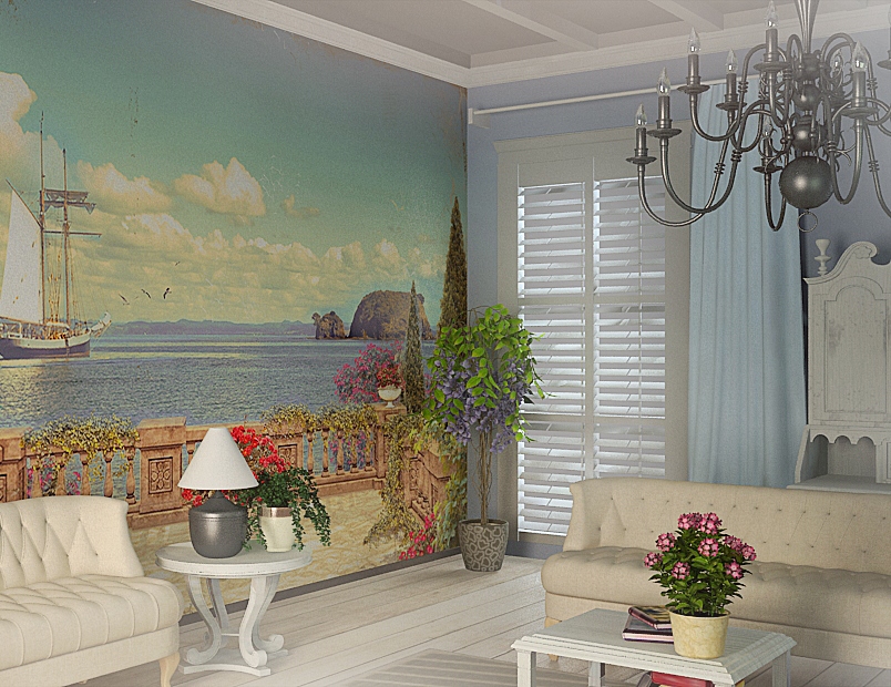 Les peintures murales représentant les rues de la ville, les jardins ombragés et les balcons donnant sur la mer créent un sentiment absolu de présence. Une parcelle correctement sélectionnée peut agrandir visuellement la pièce, soulever le plafond et même effacer les limites.