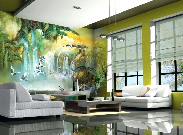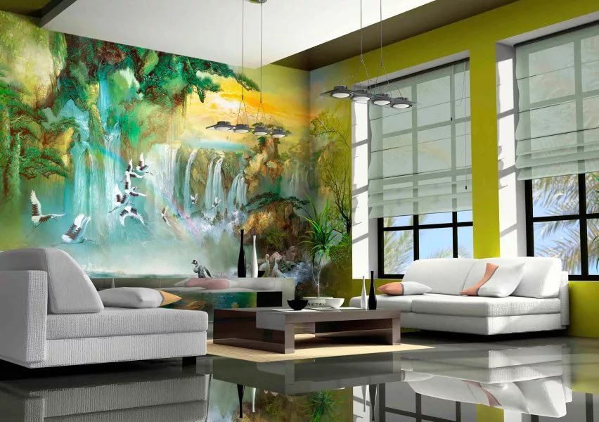 - Les peintures murales illustrant la nature s’inscrivent parfaitement dans le style écologique. Les forêts, les lacs, les cascades et divers animaux créeront à l'intérieur une atmosphère d'unité avec le monde extérieur et une complète harmonie.