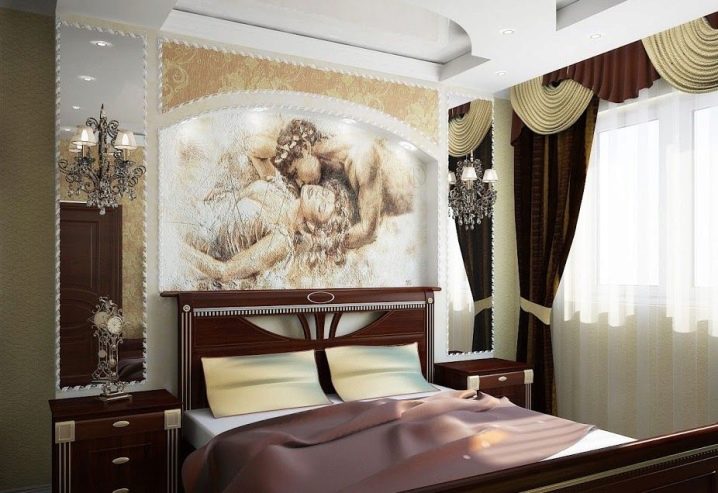 - Dans une salle décorée dans un style classique ou baroque, les reproductions de peintures anciennes seront harmonieuses. Pas moins approprié dans ce cas, beaux paysages, jardins avec des fontaines à colonnes, sujets religieux, motifs avec des monogrammes.