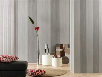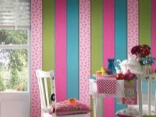 Décorer l'espace dans un nouveau bâtiment peut s'avérer très original et efficace: les experts recommandent de combiner différents types de papier peint. S'ils sont représentés par des rayures verticales, il sera possible de surmonter au moins partiellement l'humiliation des plafonds. Pour ne pas rompre l'harmonie Il est nécessaire d'appliquer un revêtement d'une seule gamme de couleurs, ne variant que les nuances. Lorsque des dessins de types différents sont combinés, il convient de choisir ceux qui sont identiques en couleur ou en style.