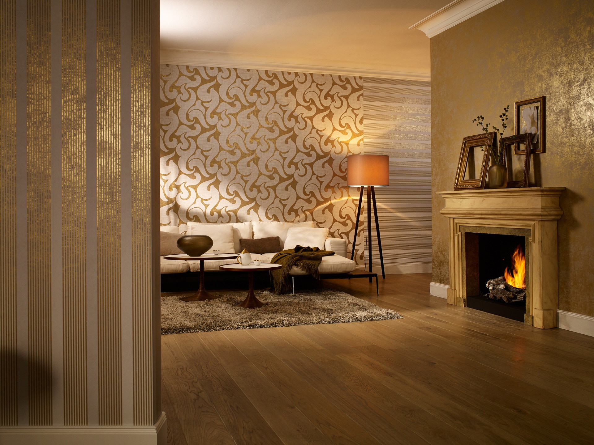 - Cette année, au plus fort de la popularité, le papier peint ordinaire est choisi et choisi individuellement pour différentes salles, exprimant ainsi son esprit et son style. La combinaison de rayures ou de lignes monophoniques permettra de distinguer visuellement certaines parties de la pièce. la fraîcheur de la perception est assurée par l'introduction d'imprimés à l'intérieur.