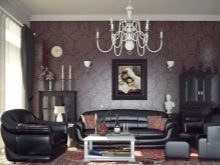 Pour chacun des styles intérieurs modernes se caractérisent par leurs propres caractéristiques dans le choix du papier peint brun. Ils apparaissent à la fois en couleur et en motif, donc en combinaison avec d'autres meubles: