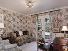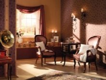 - Dans les styles intérieurs romantiques, le papier peint brun-violet avec des ornements floraux ou délicats sera un excellent choix. Cela donnera à la situation légèreté et beauté.