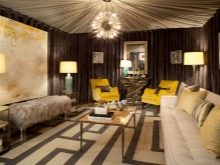 - Pour le salon est autorisé la présence de papier peint couleur café riche. Dans cette pièce, les teintes mates alternent souvent avec les zones où se trouvent les motifs. Parfois, le mur de la pièce est dilué avec un panneau qui contient diverses nuances, combinées avec du marron.