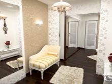 - Dans le couloir, choisissez rarement des tons bruns de papier peint. Cela est particulièrement vrai des couloirs étroits, où la couleur sombre ne fera que réduire l'espace. Le brun peut apparaître en tant que motif sur les murs clairs ou être la couleur principale du côté dimensionnel.