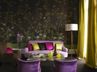 - La couleur sombre des murs réduit visuellement l'espace de la pièce. Les papiers peints conviennent aux grandes pièces avec de grandes fenêtres. Ensuite, la pièce ne "perd pas sa surface". L’effet opposé se produisant dans des espaces étroits, il n’est donc pas souhaitable de coller des papiers peints similaires dans des pièces étroites.