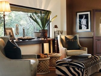 - Une nuance brune irremplaçable sera dans l'intérieur africain. Il est non seulement présent dans de nombreuses gravures d'animaux, qui sont souvent placées sur les murs sous la forme de papier peint photo, mais peut aussi souvent être réalisé sous la forme d'un revêtement mural monochromatique.Sur le papier peint marron semble intéressant des objets décoratifs, tels que des masques africains.