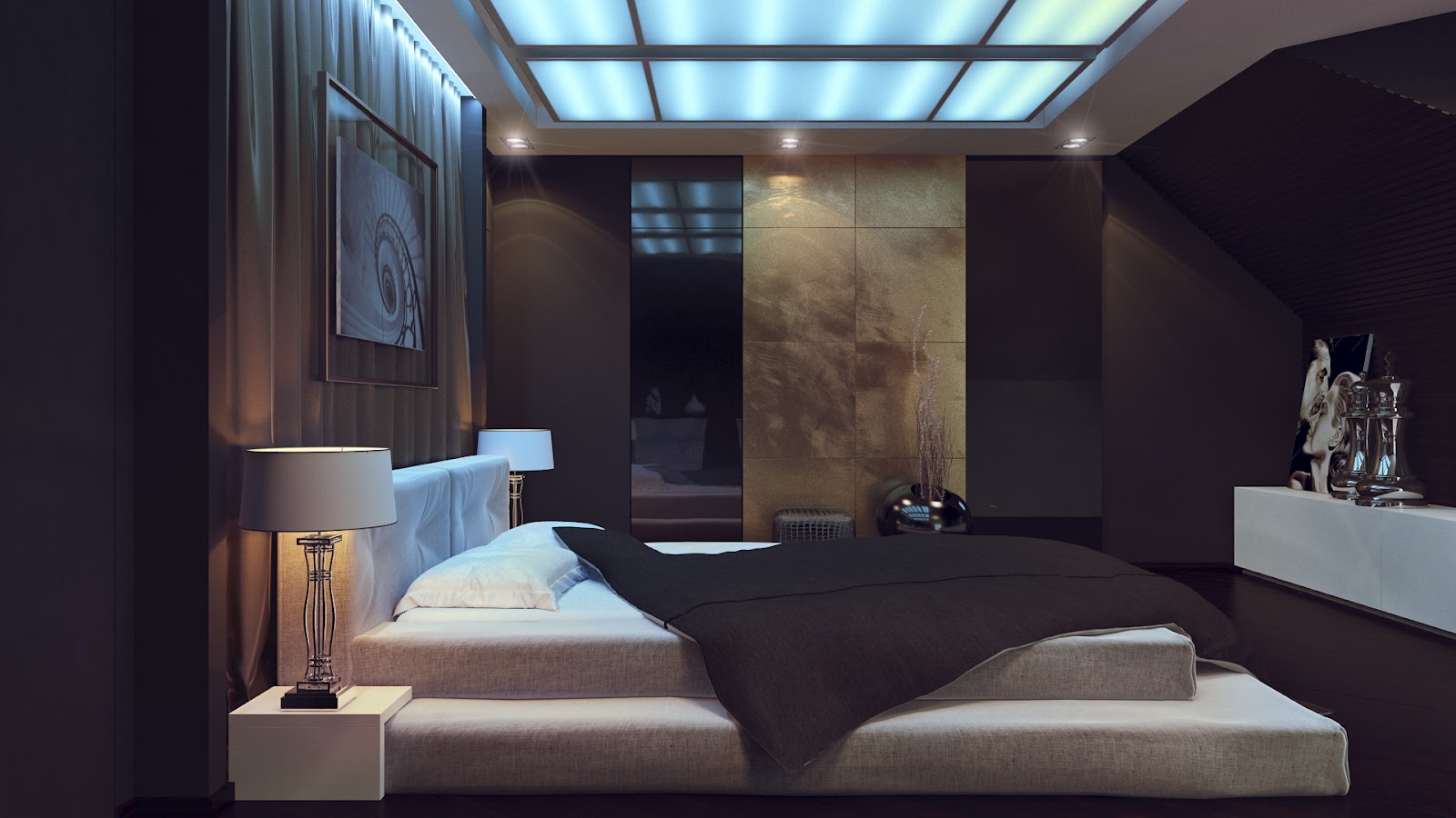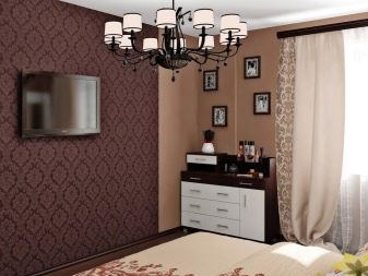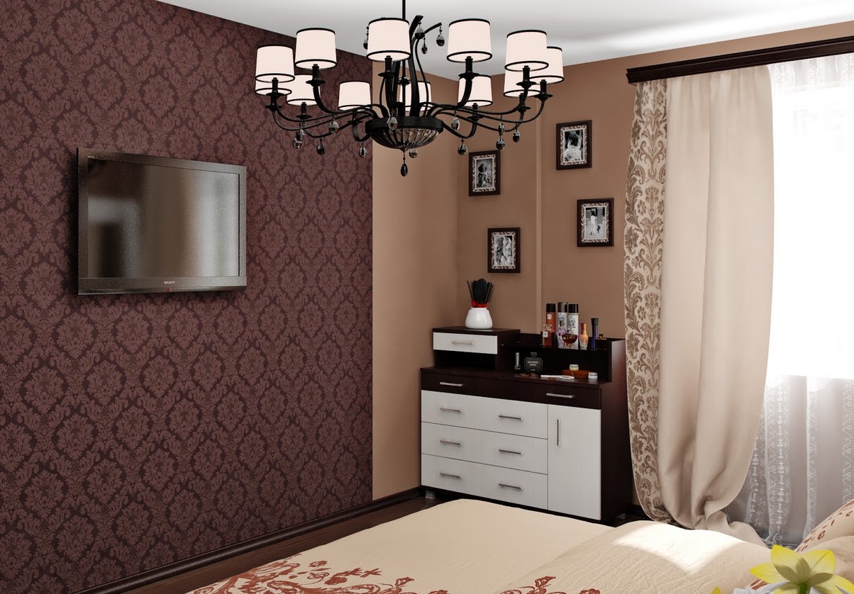 - La chambre à coucher n'est pas un endroit pour le papier peint trop sombre. Dans la plupart des cas, la couleur brune apparaît sous forme de motif sur les murs beiges ou de section d’accent avec une texture différente. Si vous choisissez le chocolat comme couleur principale des murs, il est préférable de diluer le motif avec des lignes élégantes. Des tons pastel comme le rose ou le turquoise seraient appropriés.