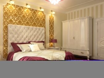 - S'il y a un lit dans la chambre, il est important que le papier peint s'harmonise avec son cadre et ses textiles. Le design classique est une répétition du motif sur le papier peint et le couvre-lit. La couleur du revêtement mural peut être répétée dans des détails de mobilier tels que des coussins décoratifs. Mais il n'est pas nécessaire de relever les rideaux bruns, car ils se confondront visuellement avec les murs et sembleront complètement discrets.