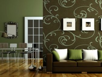 - Si le papier peint marron contient des nuances de vert ou un ornement sous forme de fleurs et de plantes, cette couleur sera très bien dans les styles avec un concept écologique.Une belle combinaison sera brune, en plus du vert, avec du blanc ou du gris clair.