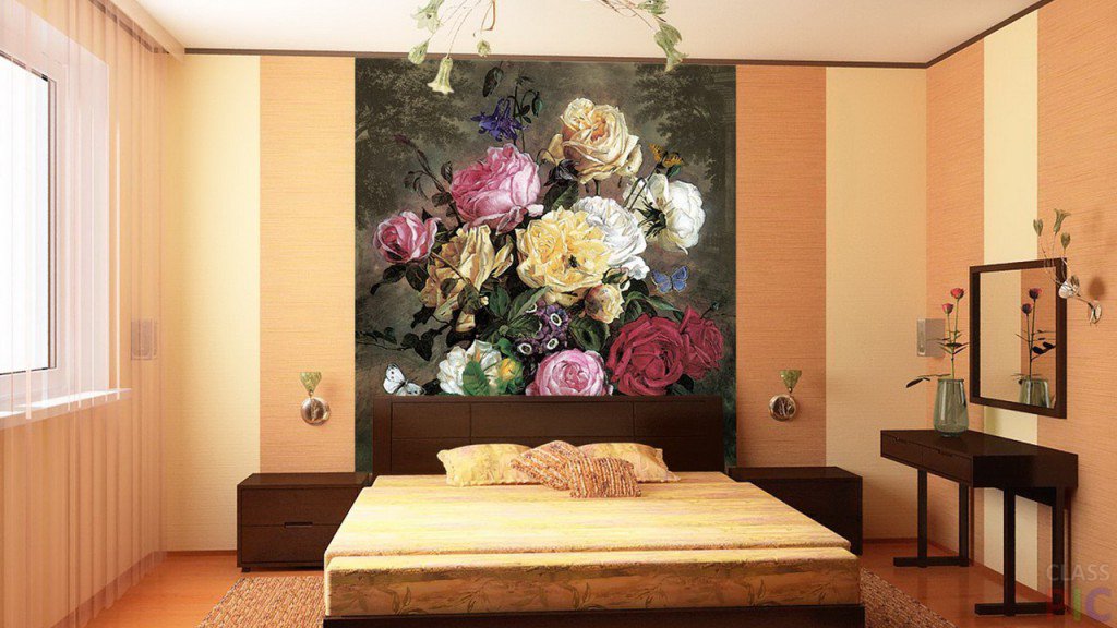 - Beaucoup préfèrent les dessins. De belles compositions sont formées avec un motif tel que des boutons floraux. Modèles non moins élégants avec des papillons. Parfois, la composition sur les murs est une abstraction qui attire le regard.