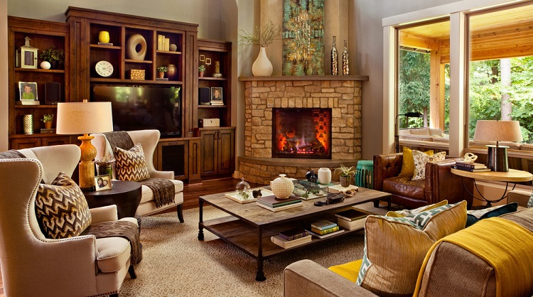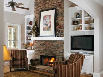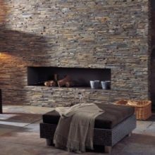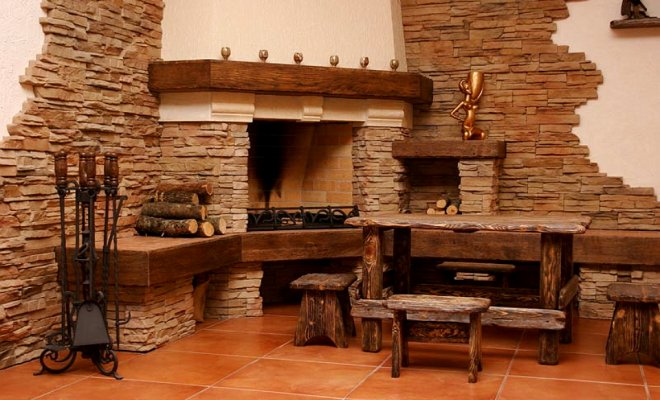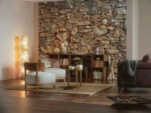 - Des meubles en bois ou en métal, des décorations de grilles et de cheminées, des objets de décoration en verre ou en bois - tout cela aura l'air très spécial si vous utilisez une finition en pierre dans la conception.