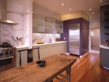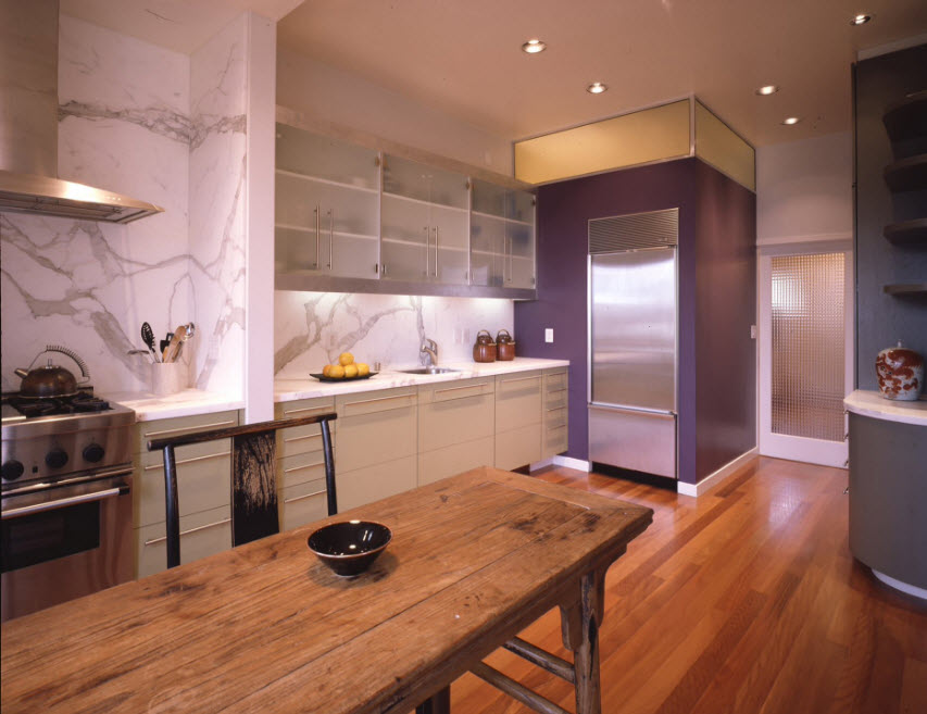 - Les finitions en marbre naturel ou en granit sont bonnes dans la cuisine et la salle de bain. Dans les grands espaces, le dessin sur marbre est utilisé avec le plus grand soin afin de ne pas créer de sensation d'espace "froid".