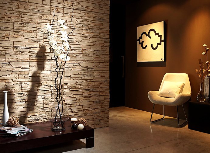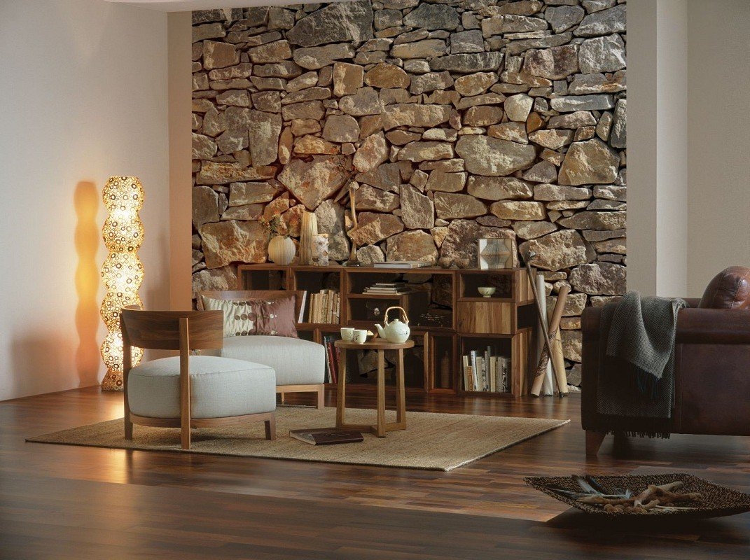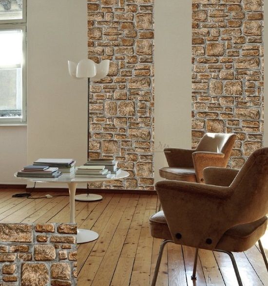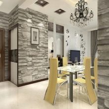 Ces papiers peints peuvent remplacer de façon spectaculaire la pierre naturelle dans la décoration. Ils donneront à l'intérieur de l'originalité, du charme et du confort. Les possibilités des technologies modernes sont nombreuses - il est aujourd'hui possible d'imiter une pierre avec une précision telle qu'il est impossible de distinguer le matériau de finition du naturel à première vue.