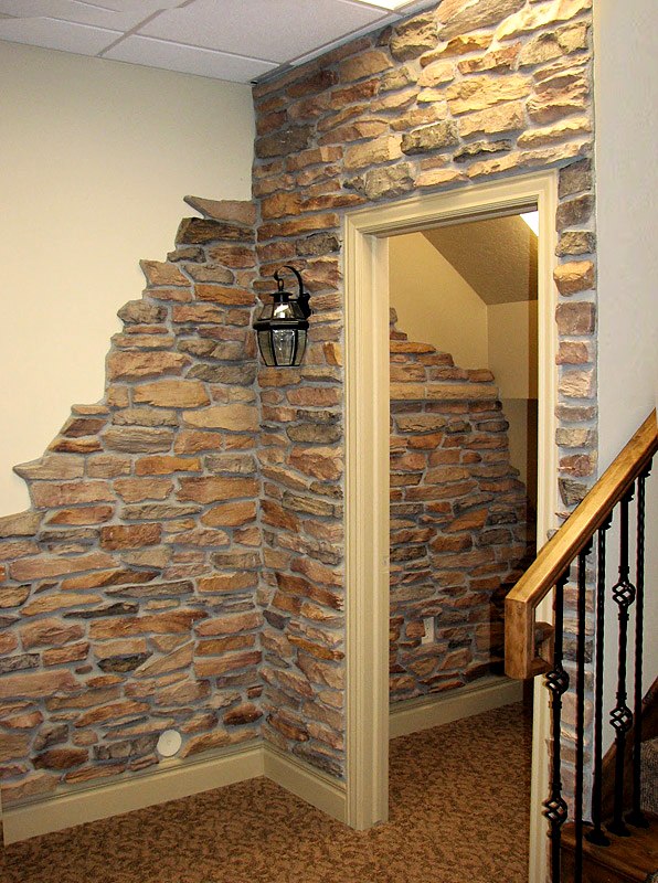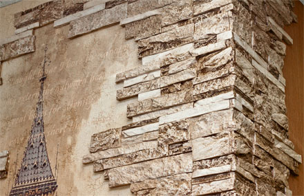 Sur le marché des matériaux de finition imitant une pierre, nous nous rencontrerons sous forme de carreau et de papier peint en pierre ou de papier peint souple.Le carrelage "sous la pierre" est composé de différentes tailles et formes et reprend complètement la couleur, la texture et les courbes de la pierre naturelle. Les tuiles sont en gypse, le poids d'un mètre carré n'excède pas 10 kg.