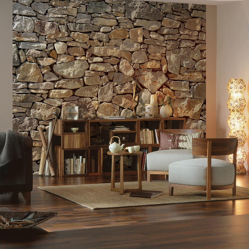 Papier peint en pierre convenant aux intérieurs modernes et aux intérieurs dotés de meubles et d'objets anciens.