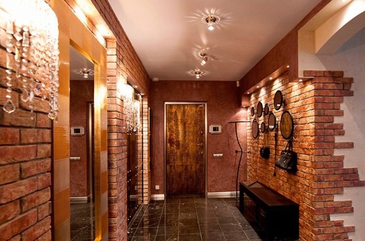 Si vous créez un intérieur avec style loft ou moderne alors vous ne pouvez pas vous passer de la conception des murs sous la brique artificielle. Ne faites pas tout l’espace «en brique» pour ne pas l’obscurcir et ne pas le réduire visuellement. De tels papiers peints sont parfaitement combinés avec du plâtre blanc uni.