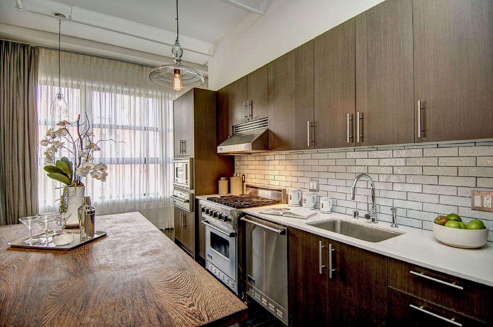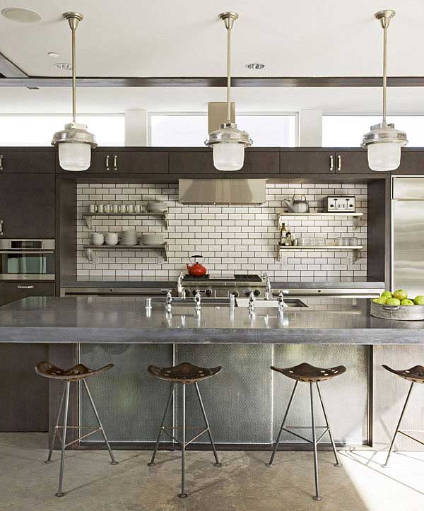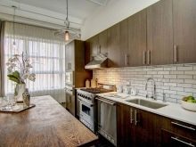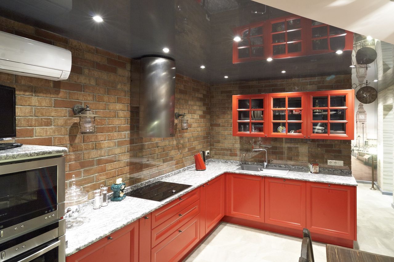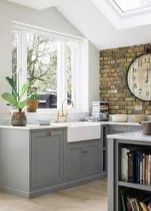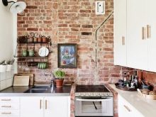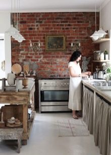 - Pour diversifier le design de la cuisine dans le style urbain - le loft et sa version commerciale - industrielle, vous pouvez utiliser la finition originale de la zone de travail pour la maçonnerie avec une surface brillante, rugueuse ou mate.