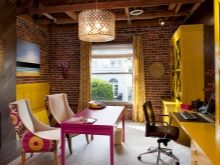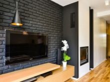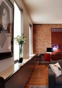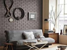 - Il semble intéressant de finir les murs avec du papier peint sous la brique, d'une couleur radicalement différente de celle des autres surfaces de l'intérieur. Dans de tels cas, le mur de contraste agit comme le point central de la pièce qui constitue le concept de design dans son ensemble.