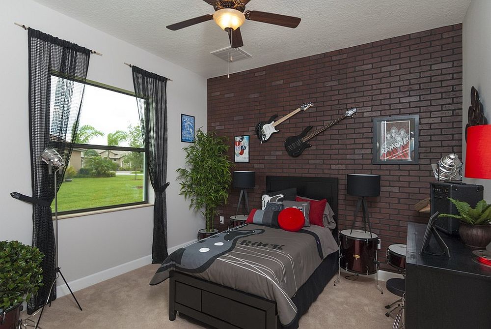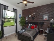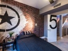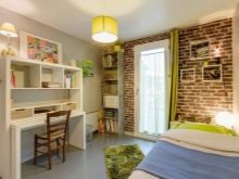 - Chambre d'adolescent. Pour la chambre des enfants, le papier peint sous la maçonnerie est trop «adulte», ce qui ne plaira probablement pas aux enfants qui préfèrent voir des héros de contes de fées autour d'eux, plutôt que des intrigues ennuyeuses en briques. Mais les adolescents apprécieront la décoration de votre espace personnel avec un papier peint stylé en brique.qu’il est bon d’effectuer un zonage intérieur et de délimiter des segments fonctionnels.