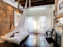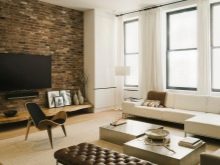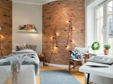 - Brique en vrac mange l'espace. Cette conception n'est justifiée que dans les pièces spacieuses, où les plafonds sont hauts et les fenêtres grandes.