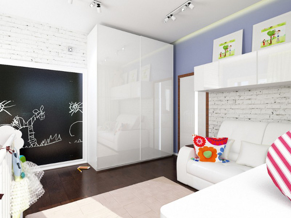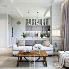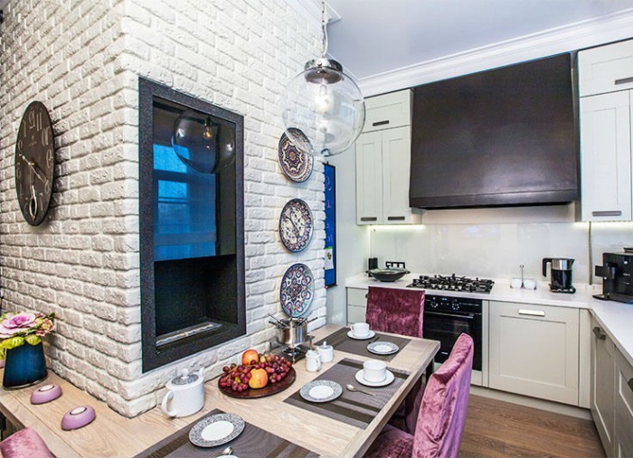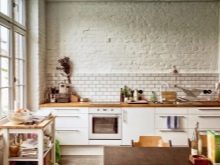 Elle se caractérise par une abondance de surfaces blanches. L’option de design la plus réussie sera le revêtement mural en briques blanches.