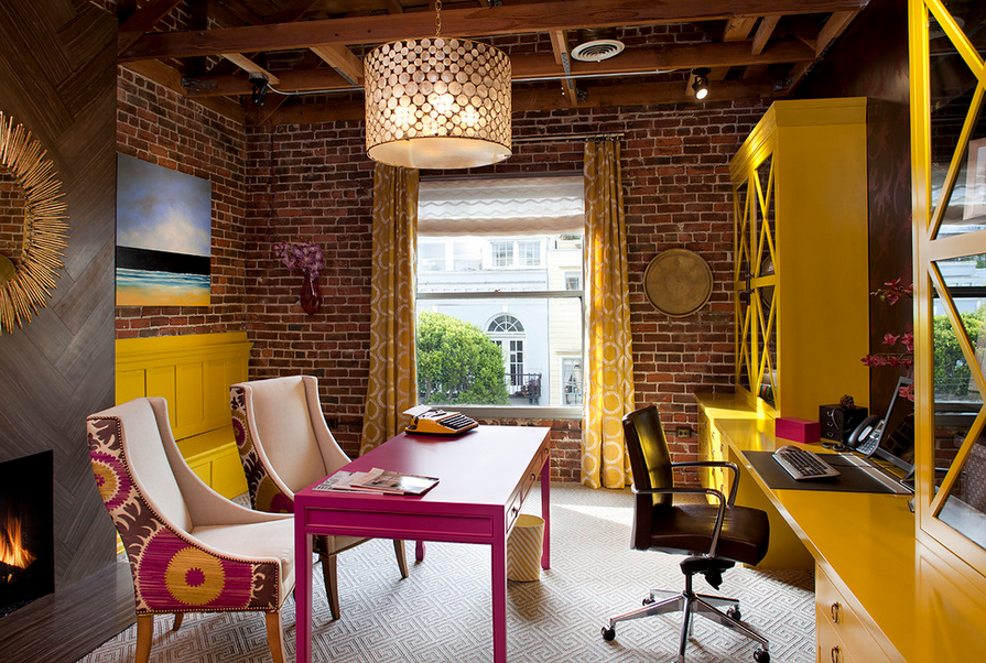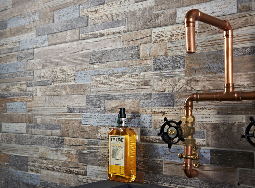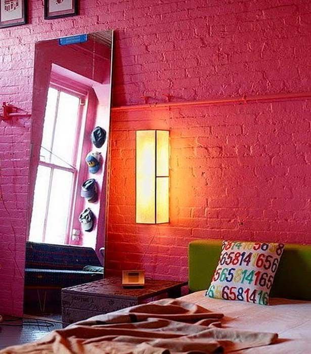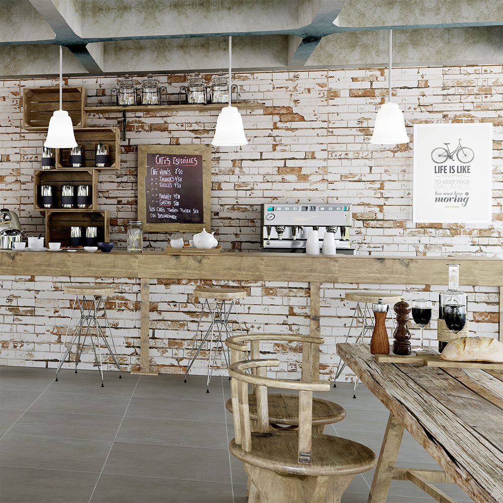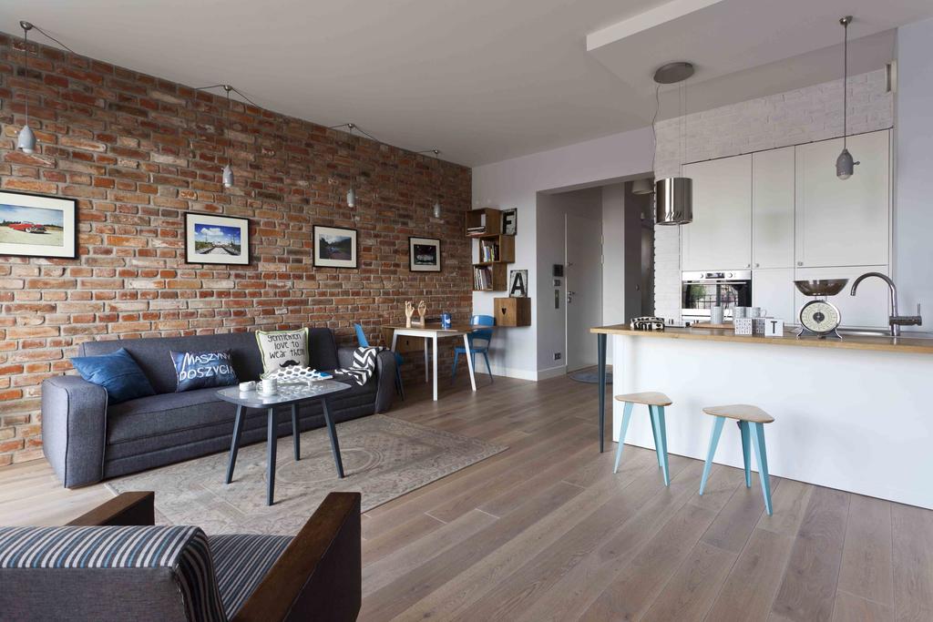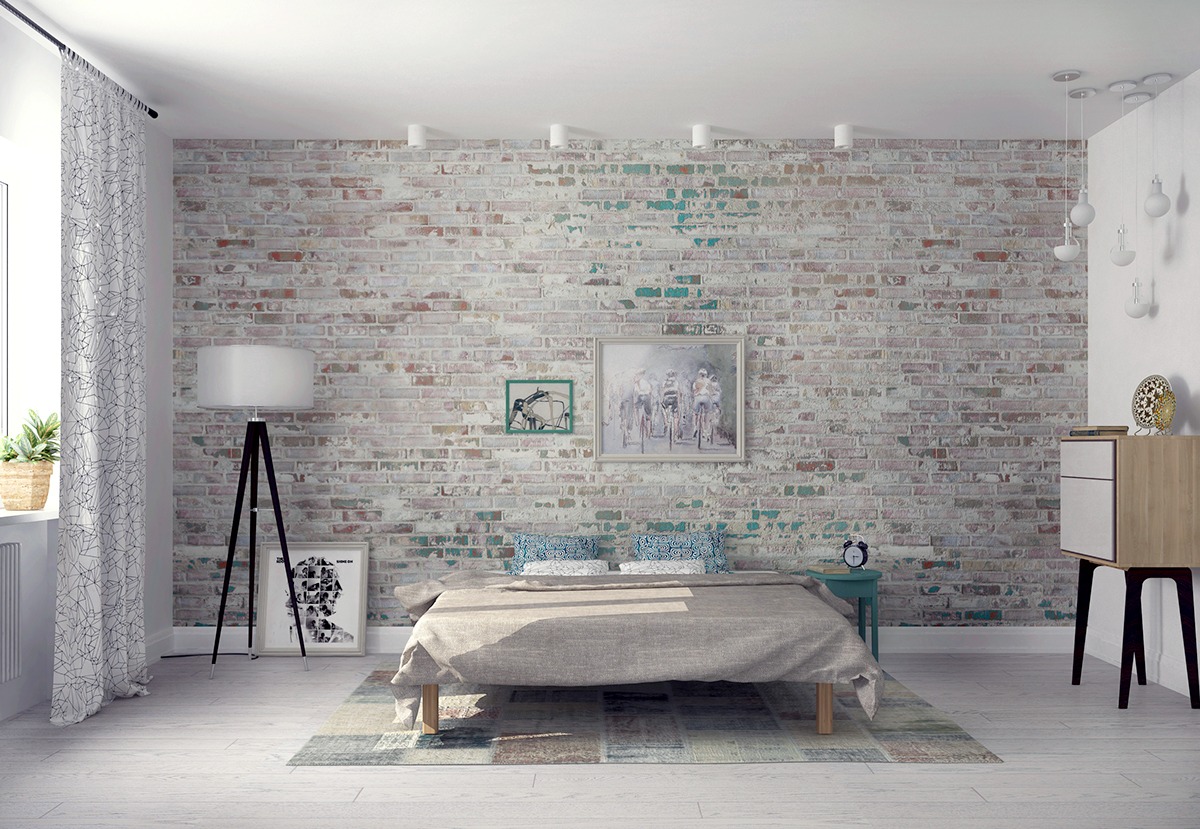 - Papier peint sous le briquetage perçu favorablement par le style de fusion démocratique, accueillant des expériences audacieuses associant textures, matériaux et décor. La finition brique souligne parfaitement la luminosité des couleurs des éléments décoratifs, des meubles et des luminaires d'origine.