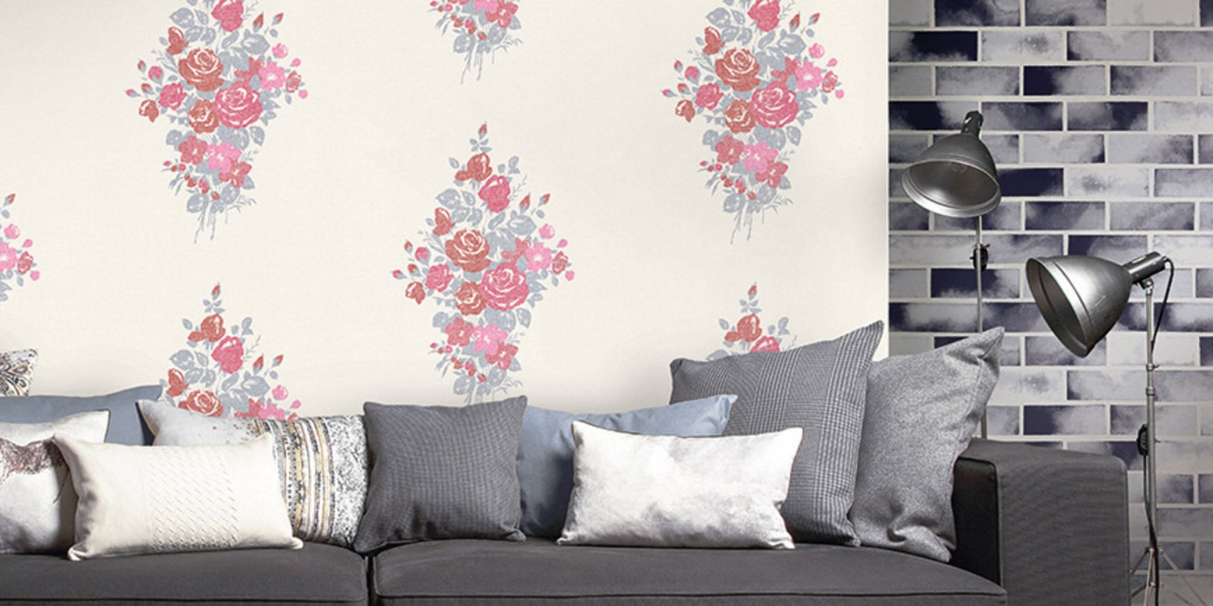 Des tapisseries ordinaires de couleurs pastel de bleu, violet, turquoise et rose sont utilisées comme fonds d'écran de compagnon avec des placettes de fleurs délicates et sans prétention, à bandes verticales ou à cellules à faible contraste.