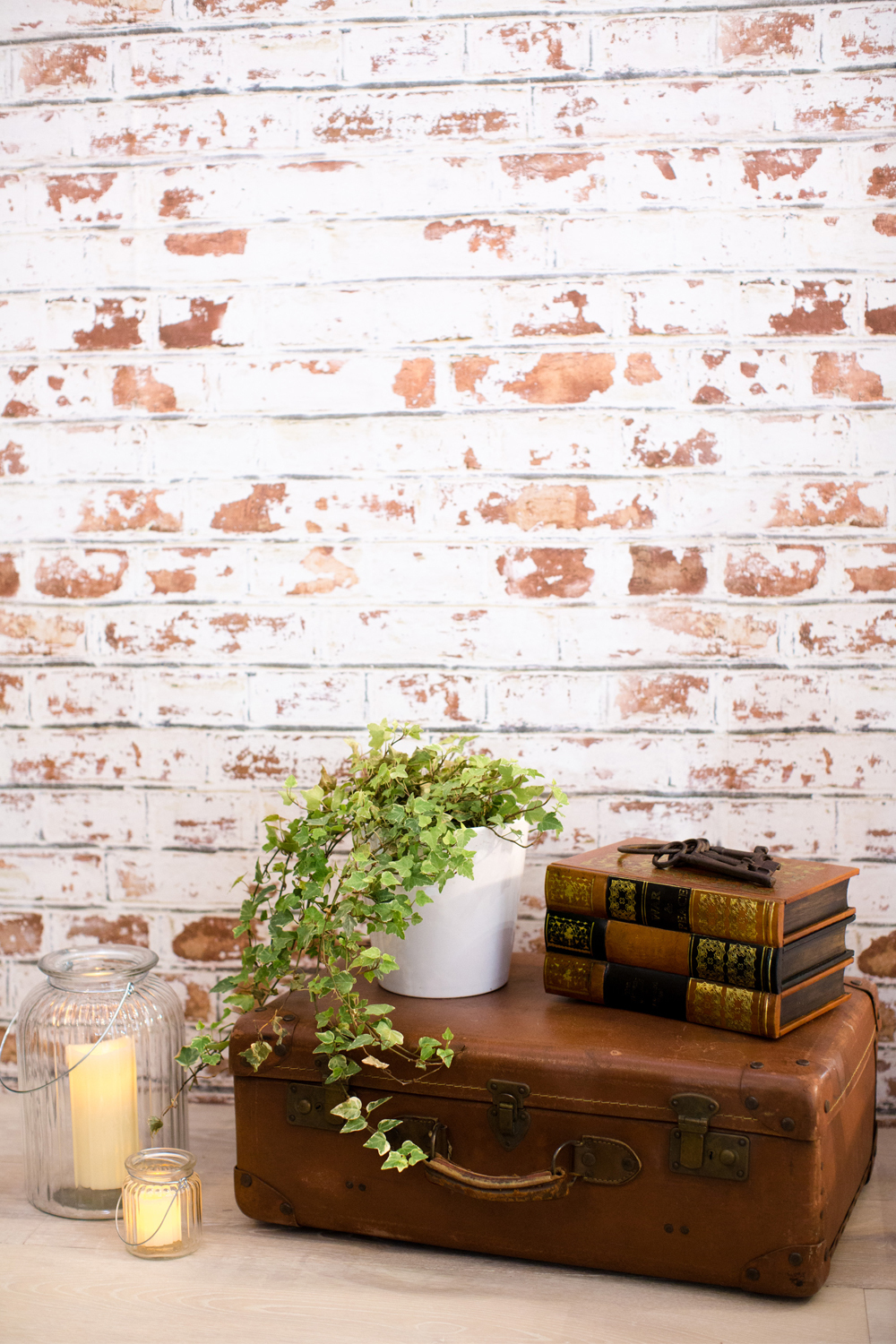 - Avec des surfaces en plâtre. Papier peint au look original sous la vieille brique blanchie à la chaux et le plâtre rugueux.