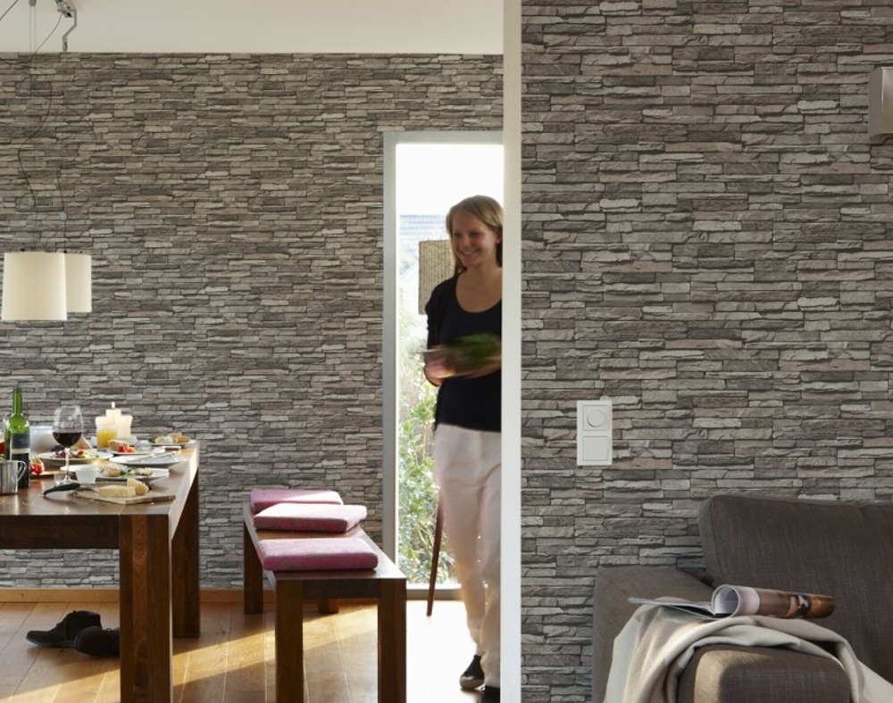 Ici, vous pouvez choisir un papier peint imitant la maçonnerie, le mur de béton, la pierre, le tableau brut.. L'utilisation de la technologie de gaufrage en profondeur permet le transfert parfait des nuances les plus fines de la palette de couleurs.