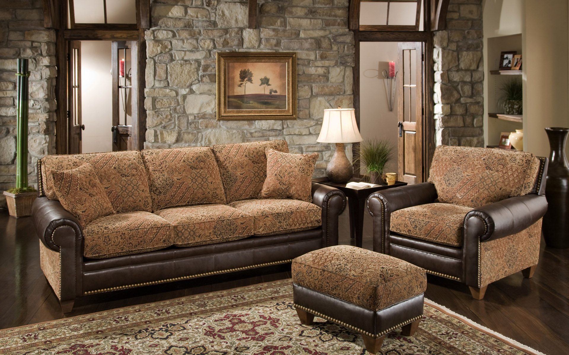 C'est un papier peint approprié avec une impression de brique des nuances claires d'une palette jaune ou avec une imitation de la brique blanchie à la chaux. Il est conseillé d'utiliser un revêtement de texture prononcée qui, en raison de fissures, d'irrégularités et d'abrasions, simule de façon réaliste le maçonnage brut de l'habitation du village.