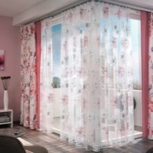 Ici, les doubles rideaux sont beaux et appropriés, y compris les rideaux de tulle et de nuit épais. La légèreté du premier matériau est à la base du second, où de beaux motifs et de belles silhouettes sont appliqués. Pour créer un tel ensemble, n’oubliez pas l’influence des éléments décoratifs et des motifs.Ils doivent être compétents les uns des autres et ressembler à comme s'ils étaient un.