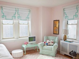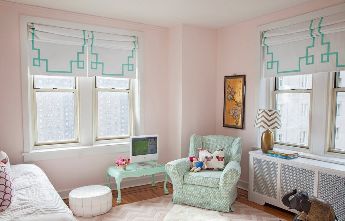 Parmi les nombreuses couleurs, la plus populaire est la teinte rose, qui donne le calme, la tendresse et la noblesse à la pièce. Cela vous permet de créer une atmosphère unique où chaque membre de la famille est à l'aise.