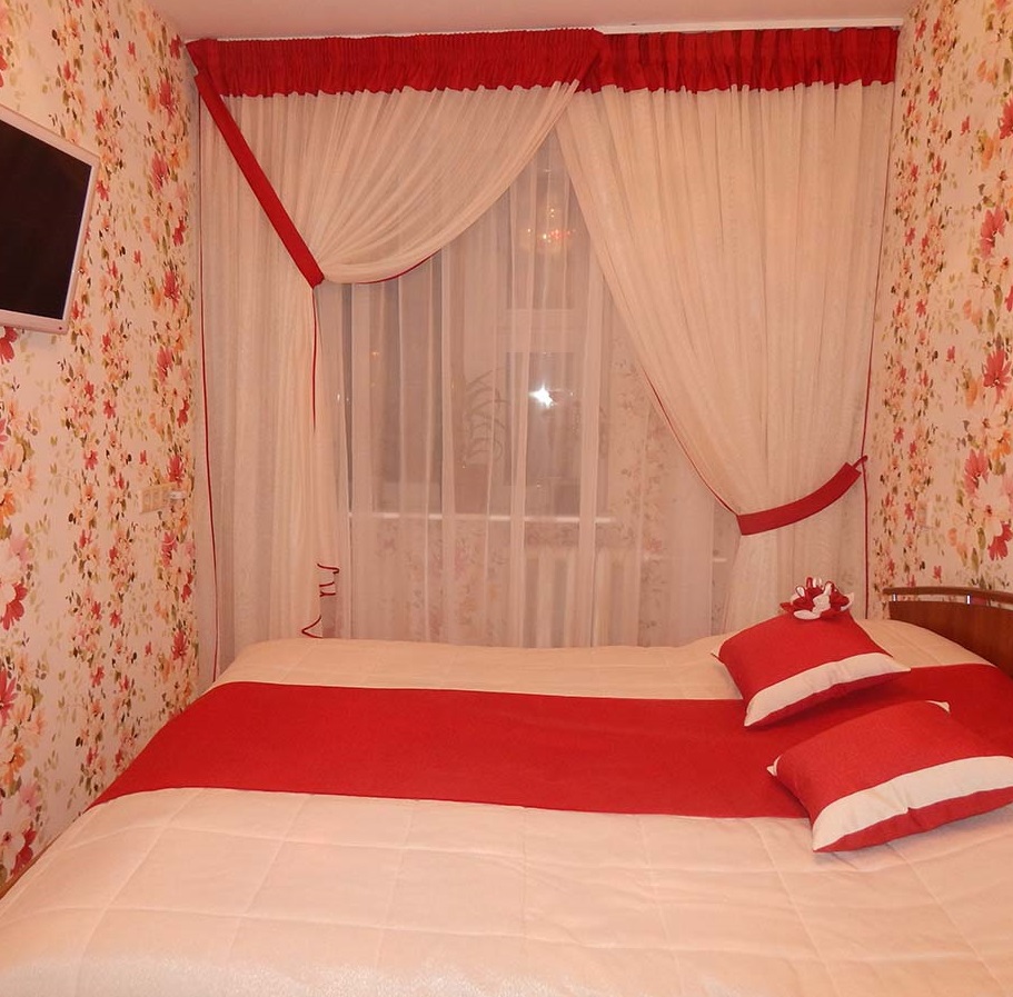 Lors du choix des rideaux, il est nécessaire de respecter non seulement les caractéristiques d'origine de la pièce, mais également la couleur du papier peint, si les murs sont décorés avec cette option de décoration extérieure.