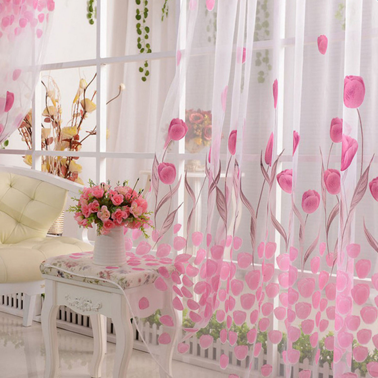La couleur blanche est une option gagnant-gagnant lorsqu'elle est utilisée avec des nuances de rose. Il se caractérise par une force, une tranquillité et une pureté étonnantes. L’utilisation de rideaux blancs convient à tout intérieur, L'essentiel est de sélectionner correctement l'intensité et la texture.