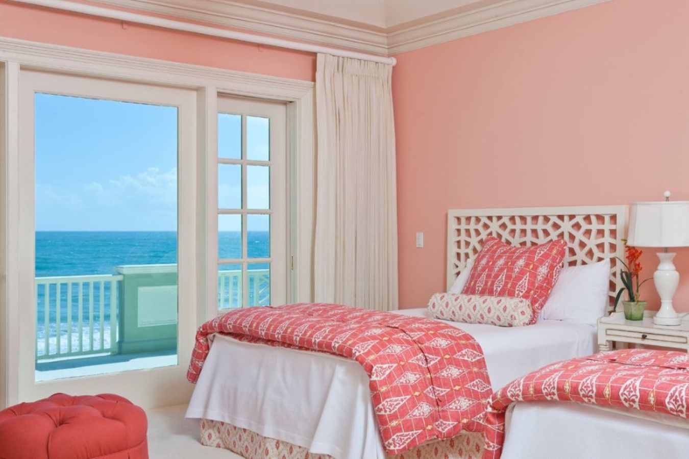 La combinaison de murs roses et de papier peint blanc peut sembler différente. selon le but de la pièce: