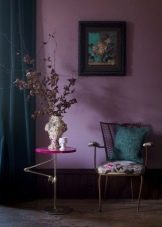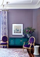 Choisir un mobilier qui correspond à la couleur des murs lilas n’est pas si facile. Le plus souvent, les concepteurs proposent d’opter pour le blanc, le beige ou le lait, autrement dit la lumière. Cette solution équilibrera la profondeur de pourpre et remplira l'intérieur de lumière.