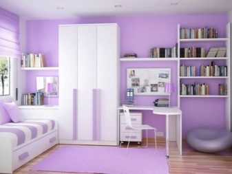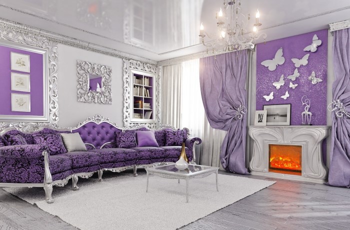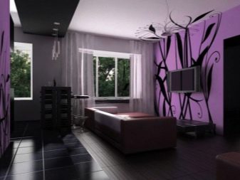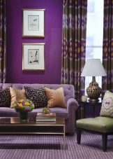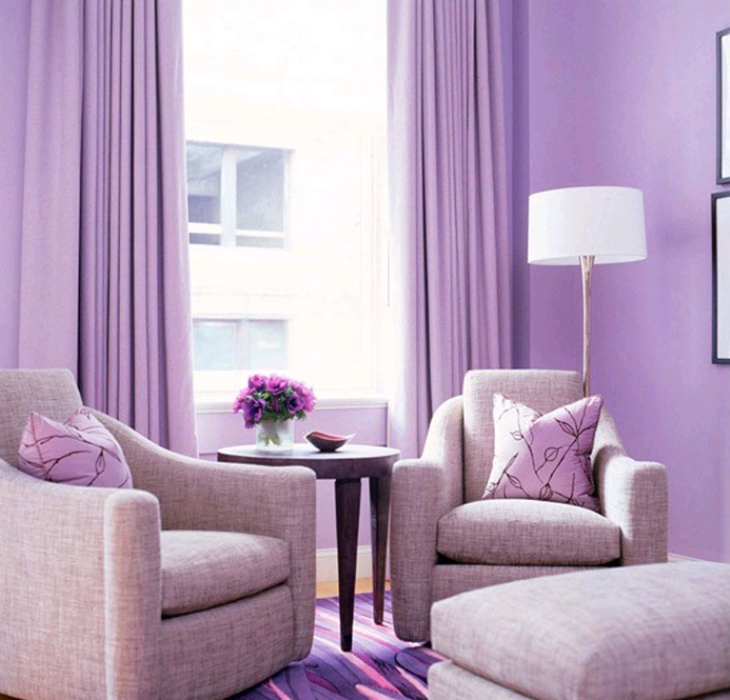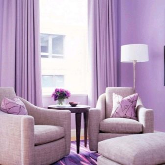 Étant donné que la couleur lilas est plutôt compliquée, il est important de choisir le bon éclairage et la bonne couleur des rideaux afin que l’intérieur fini soit harmonieux et qu’il ne soit pas gênant.