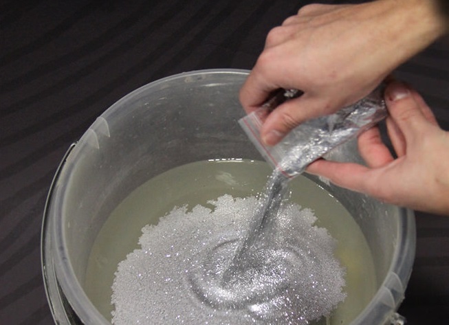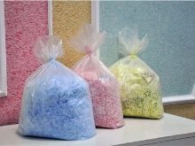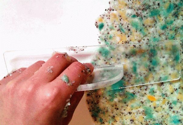 Cependant, lors de la création d'une texture spéciale, il est important de ne pas surcharger la masse avec une abondance de décor (paillettes, nacre, éclats de marbre): cela n'a pas le meilleur effet sur la texture, complique la doublure, mélange uniforme des inclusions, soulignant les inconvénients du mélange au mur.