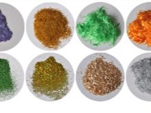 - inclusions décoratives (miettes de marbre, troupeau coloré, écailles de mica, paillettes et nacre).