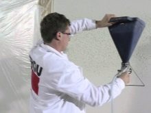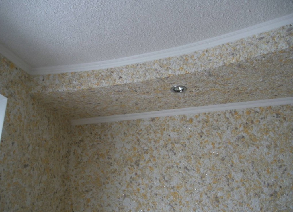 Si, en plus des murs, le plafond doit être traité, la préparation de ce plan est effectuée de la même manière. Une fois la surface sèche, du papier peint liquide peut être appliqué sur les murs.