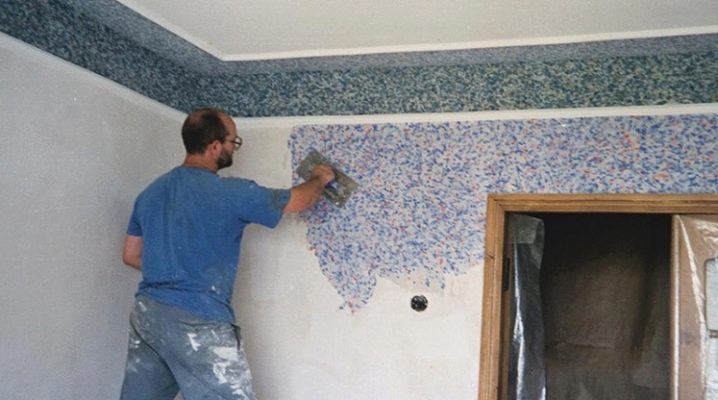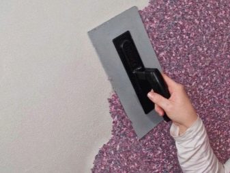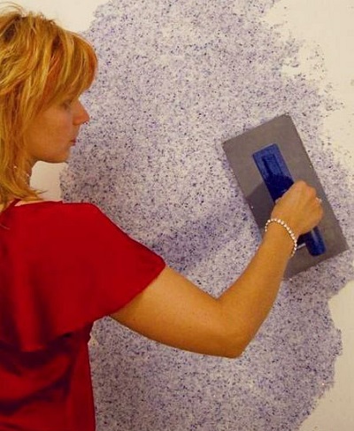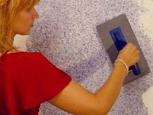 Il est facile de travailler avec ce matériau, mais c’est une tâche fastidieuse qui n’est pas pressée, sinon la vue des murs risque de s’embrouiller. Il est important de respecter la même couche d'application: la surface du mur aura l'air monolithique.