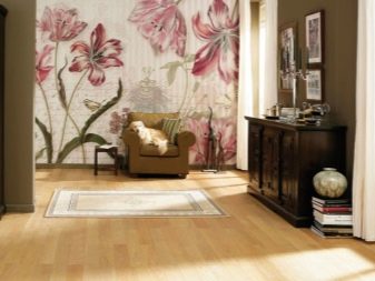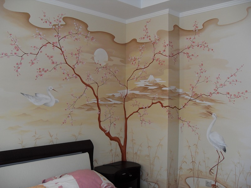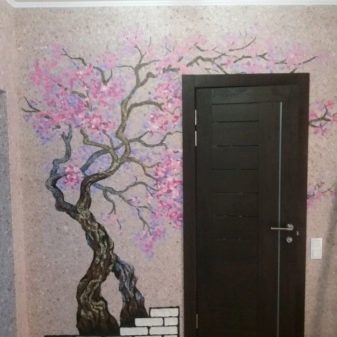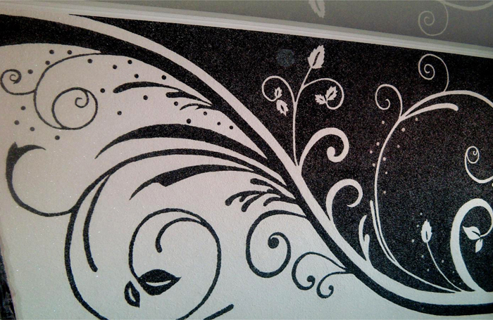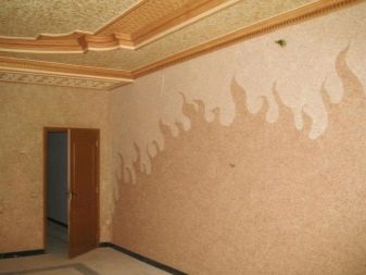 Les dessins stylisés légers sont considérés comme des techniques de conception réussies. Ils ne surchargent pas l'intérieur de la pièce, peuvent être situés dans des lieux ouverts, décorés avec des cadres, être un accent d'espace discret, mettant l'accent sur un certain style. Une méthode unique de décoration des murs consiste à appliquer du papier peint liquide sur le mur à l’aide d’un rouleau spécial avec motif.